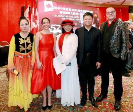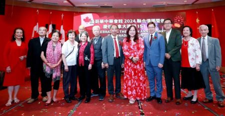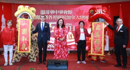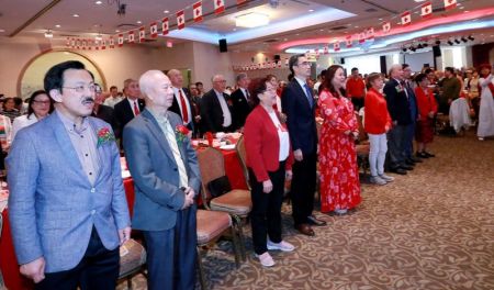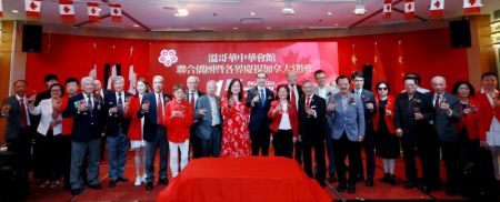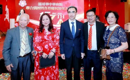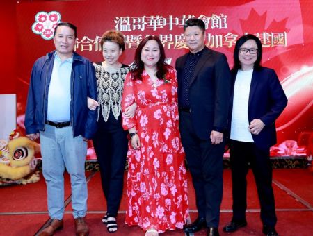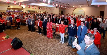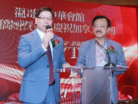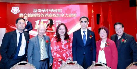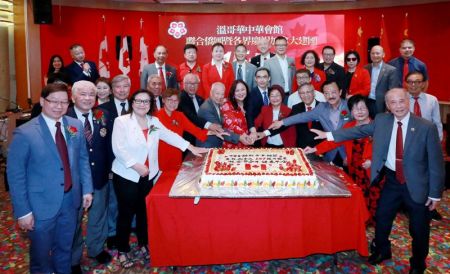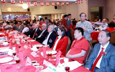 当晚组委会在华埠富大海鲜酒家宴开百席,近千民众欢歌笑语共庆这个值得纪念的日子。应邀出席晚宴的有加拿大联邦枢密院终身院士黄陈小萍,中国驻温哥华总领事杨舒,BC省议员李耀华,温哥华市学务委员钱育廷,香港驻加西首席代表袁黄洁玲及本地社区各社团代表等。