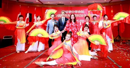 升旗及庆祝仪式结束后,中华文化中心还组织了丰富多彩的歌舞表演以及中国传统文化演示和参与活动。