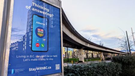 加拿大BC商业议会(Business Council of BC)发起了一项宣传活动,以应对卑诗省民搬迁至亚伯达省的情况。BC商业议会表示他们发起的「留在BC」(Stay with B.C.)活动正在温哥华、维多利亚、基隆拿和乔治太子市等城市的广告看板、公车站以及网络上投放广告,呼吁省民在出于经济或其他原因搬到阿省之前三思而后行。