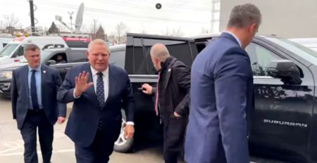 福特与妻子Karla Ford在伊桃碧谷(Etobicoke)的一处投票站投下选票。在进入投票站前,福特接受采访,重申他是应对美国总统特朗普关税威胁的最佳人选。福特表示:“我请求您的选票,以获得强有力的授权,让我们挺过特朗普的政策,并比他更持久。我将保护安省人民,保护您的家庭、工作和企业。”