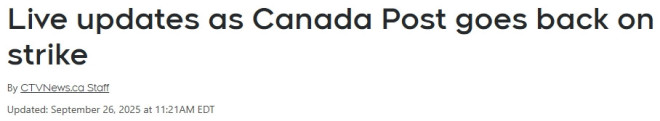 加拿大人于昨天周四(9月25日)下午突然遭遇一记“重磅惊喜”:代表加拿大邮政工人的工会突然宣布全国大罢工。