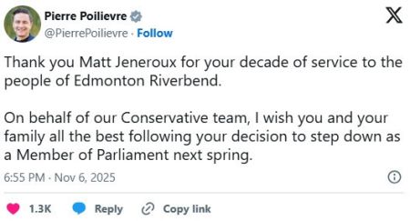 杰内鲁自2015年起代表阿尔伯塔省埃德蒙顿河湾选区(Edmonton Riverbend),在保守党内长期关注家庭政策、心理健康与中产阶层议题。博励治在声明中感谢他“十年来的奉献”,并祝福他与家人一切顺利。“我们祝他在明年春天正式离任后,开启人生新篇章。”(据51网、CTV News、NationalPost、Twitter)