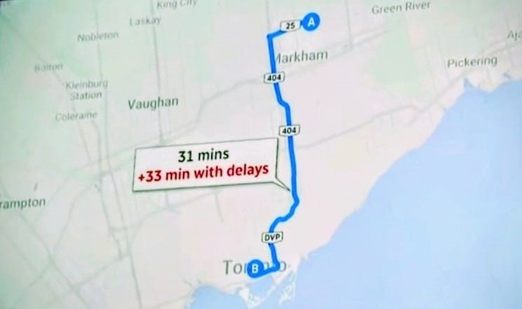 第3位:安省万锦市至多伦多:畅通时行程约需31分钟,繁忙时份多33分钟,从市郊往人口稠密的市中心,通常都会越走越慢。