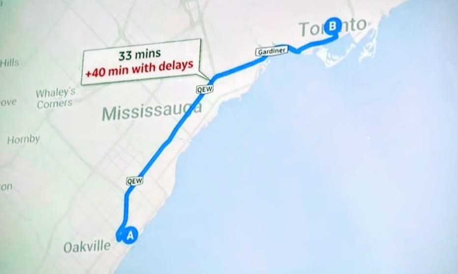 第1位:安省Oakville至多伦多:畅通时行程约需33分钟,繁忙时份多40分钟。Gardiner有大型工程进行中,有多个公路交汇处和出口,导致车流很多樽颈位。
