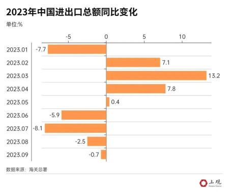 东盟依旧是中国第一大贸易伙伴,前三季度,占中国出口总额的15.2%,同比增长0.8%。而像中亚、非洲、拉美这些新兴市场,进出口增幅较大,例如对中亚的进出口,前三季度的同比增幅达到33.7%,远高于我国外贸的整体增速。