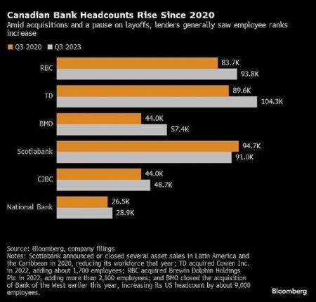 除加拿大帝国商业银行(CIBC)以外,加拿大六大银行第三季度的经营杠杆均为负,这意味着非利息支出的增长速度快于收入,在承诺2024年扭转这一局面之际,银行需要控制成本。