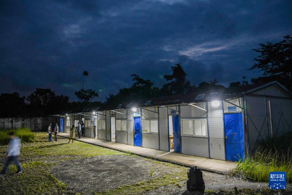 这是7月11日拍摄的喀麦隆南部大区克里比市恩杜马莱双语学校夜景。新华社发(科普索摄)