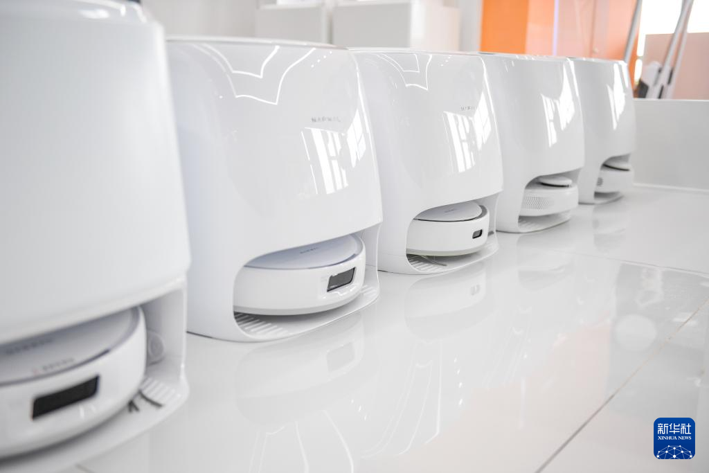 2024年8月20日,在位于深圳的云鲸总部拍摄的多款扫拖机器人。新华社记者 毛思倩 摄