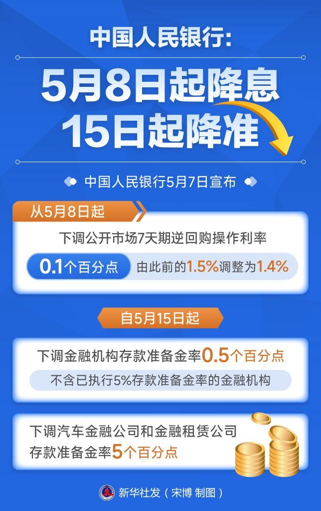 新华社北京5月7日电,宣布降息降准、设立服务消费与养老再贷款、完善房地产融资制度、发布公募基金重要改革举措……7日上午,三位金融管理部门“一把手”亮相国新办发布会,推出一揽子金融政策,释放稳市场稳预期的强信号。