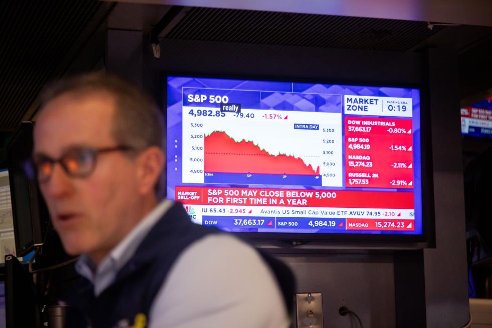 4月8日,交易员在美国纽约证券交易所交易大厅工作。新华社发(郭克摄)