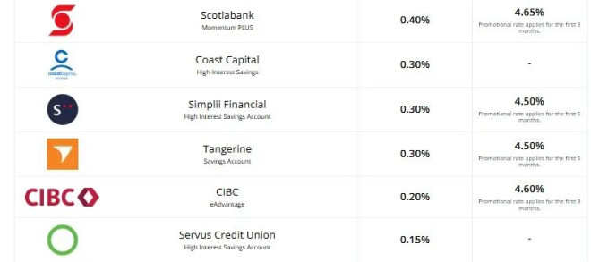 根据《环球新闻》的报道,目前最高的储蓄账户优惠利率为 4.70%,由 Meridian Credit Union 提供,优惠期为四个月。加拿大丰业银行(Scotiabank)的储蓄账户提供 4.65% 的三个月优惠利率。蒙特利尔银行(BMO)、加拿大皇家银行(RBC)和加拿大帝国商业银行(CIBC)则提供 4.60% 的优惠利率,其中 BMO 的优惠期为四个月,而 RBC 和 CIBC 为三个月。