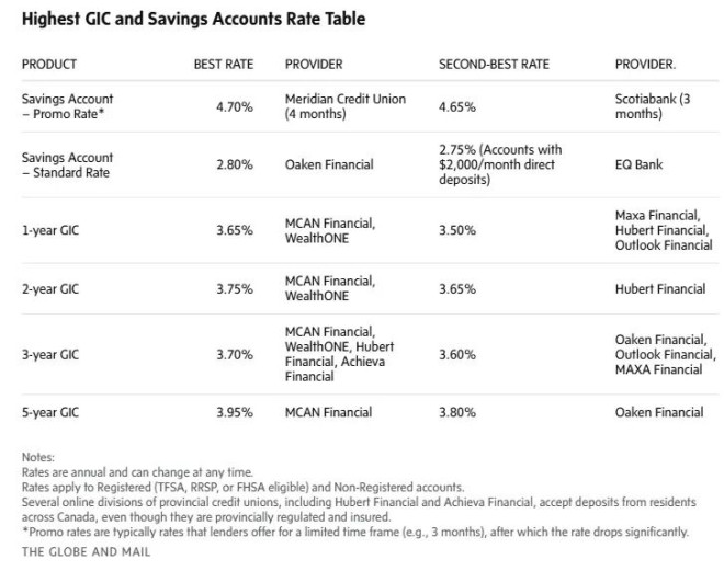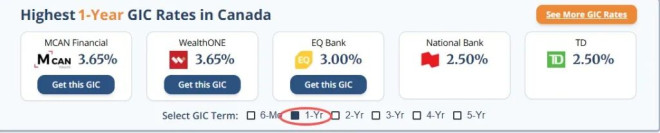 这两家机构也将这些 GIC 利率适用于注册投资账户,例如免税储蓄账户(TFSA)和注册退休储蓄计划(RRSP)。