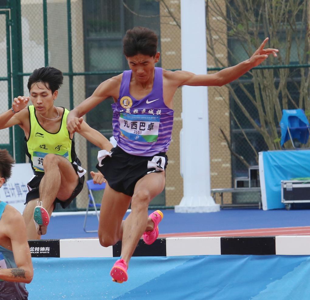11月10日,西藏队扎西巴卓在比赛中。当日,在大学乙组男子3000米障碍决赛中,他以9分04秒23获得冠军。赛事组委会供图