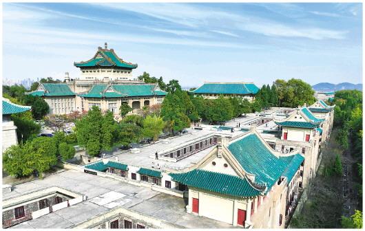 矗立在狮子山顶的图书馆,其中西合璧的建筑风格古朴典雅、气势恢宏,飞檐翘角的八角塔楼犹如皇冠,被学子们亲切地称为“老图”(老图书馆)。踏上台阶推门步入老图,庄严肃穆的历史气息扑面而来。