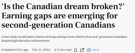 许多移民家庭来到加拿大后,努力寻找自己的立足点,督促孩子好好学习以便找到一份高薪工作,拥有与“其他加拿大人”相同的机会。这大概是许多移民家庭对成功实现移民梦的定义。但根据周三(2月21日)发布的一项研究,这个梦想已经开始出现裂痕,因为自20世纪60年代中期以来,每一批出生在加拿大的移民二代在收入方面都比白人同行要差得多。对于某些族裔群体来说,尽管他们接受了更多的教育,但情况仍然如此。