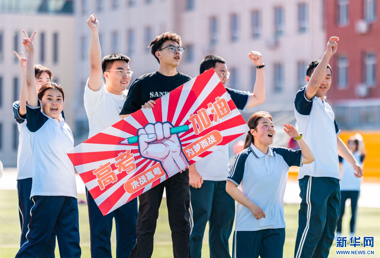 5月13日,呼和浩特市第十二中学高三学生在趣味游戏活动上欢呼。新华网发(丁根厚 摄)