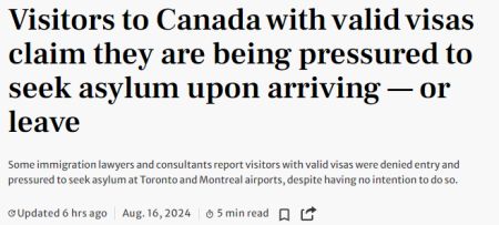 然而,最近几个月,一些乘坐飞机前往加拿大的旅客在社交媒体上表达了他们的不满,声称他们被加拿大边境官员扣留和骚扰,怀疑他们来访的真实性,并要求他们立即离境,否则就得提交难民申请才能进入加拿大。与此同时,一些移民律师和顾问也证实,他们最近接到了更多这类案子:一些持有效签证的游客在多伦多和蒙特利尔机场被拒绝入境,并被告知可以选择寻求庇护,尽管他们并无此意。