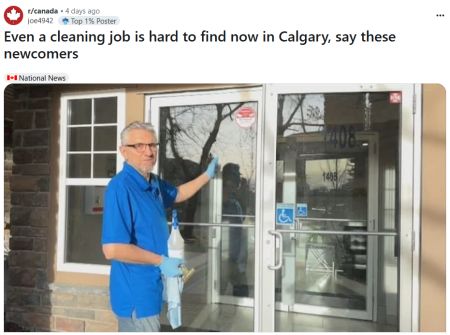 许多新移民抵达加拿大时,由于英语水平不高,往往会选择从清洁工、仓库工人等门槛较低的职位入手。然而,随着新移民失业率飙升,即便是这些入门级工作也变得供不应求。对于那些背井离乡、冒着生计风险来到这里的新移民来说,这无疑是“毁灭性的打击”。