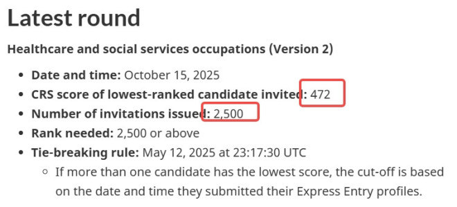 本轮抽签针对 “医疗与社会服务类”职业类别的申请人,共发出2,500 份 ITA。