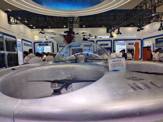 在第二十六届中国北京国际科技产业博览会的无人机展区,一位父亲带着儿子在翼展9.5米的一台大型无人机旁合影。本届科博会上,要问哪一展区“求合影”的观众最多,无人机展区一定榜上有名。