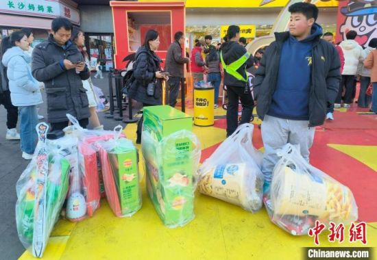 在长沙一家超大零食店,从事设计工作的“90后”李敏买了一米多长的薯片、大片辣条和超大桶方便面。“每周都要来消费一次,选购过程中会和超大零食合影,再发朋友圈。”李敏说,这样可以炫酷一把。