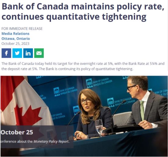 加拿大央行今日(10月29日)宣布,将隔夜利率目标下调25个基点至2.25%,同时将银行利率设定为2.5%,存款利率为2.20%。央行在最新声明中表示,随着美国贸易措施对经济增长和通胀的影响逐渐明朗,央行在本次《货币政策报告》(MPR)中恢复了对全球及加拿大经济的前瞻预测。