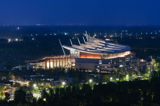 第12届世界运动会7日晚在中国成都开幕。在亚洲最大单体木结构建筑——长达460米的“天府之檐”下,成都世运会向世界敞开怀抱。在这片开放的城市空间中,城市天际线与湖景绿地浑然一体。
