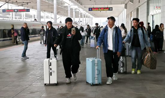11月15日凌晨5时,汉口站站台上,已装袋整齐的服装、生鲜、电子产品等10吨快件有序摆放,铁路工作人员正将包裹搬进高铁车厢。当天,DJ892次和DJ890次高铁动车组列车分别从汉口站和广州白云站开出,华中地区与粤港澳大湾区新添高铁快运线路。