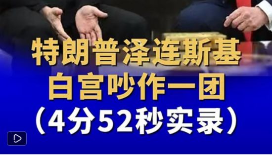 美国总统特朗普与乌克兰总统泽连斯基在白宫举行会谈。会谈过程中,双方在媒体前爆发激烈争吵,泽连斯基提前离开白宫。原计划的联合记者会被取消,美乌矿产协议未能签署。