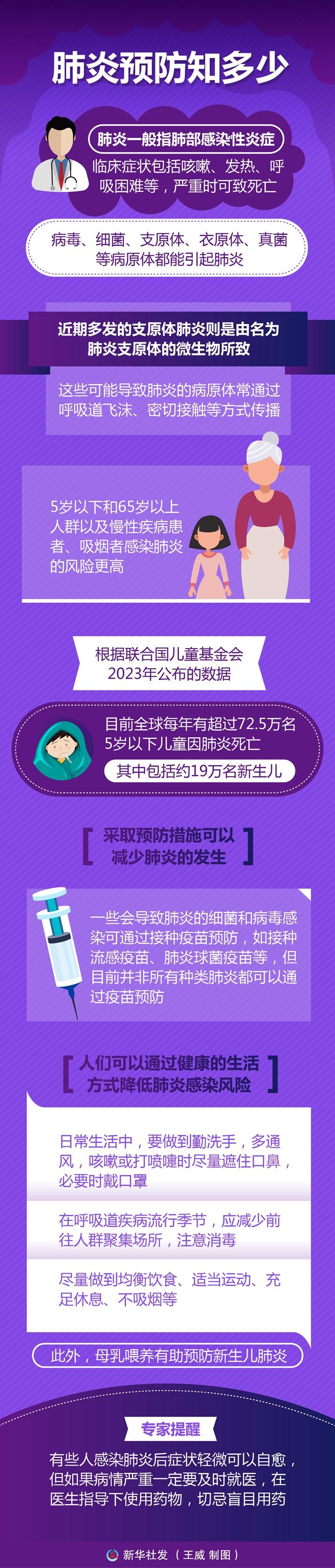 新华社北京11月12日电 支原体肺炎、细菌性肺炎……肺炎种类颇多,不仅是全球儿童死亡主要原因之一,也对其他各年龄段人群构成威胁。