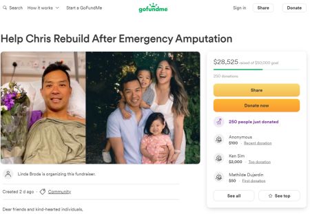 这个家庭的好友Linda Broda发起了一GoFundMe募捐活动,帮助Won、Hui和他们的两个孩子度过难关。目标金额是5万元,目前已经筹得2.8万元。Broda表示:"我们今天向您发出衷心的请求,请求您提供帮助。"筹款人表示,他们已经征得这家人的同意来分享他们的故事。"虽然他们有旅行保险,但康复之旅并没有就此结束,"Broda补充说:"他们未来返回温哥华的家中后,还将面临着大量开支,包括购买假肢以及在这一困难时期应对收入损失的挑战。"