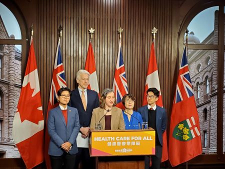 加拿大安省官方反对党新民主党省议员黄慧文 (Kristyn Wong-Tam 多伦多中区省议员)、贝诗雅 (JessicaBell, 大学玫瑰谷省议员)和高礼思 (Chris Glover, 士巴丹拿 – 约克堡区省议员)联同彭亨利医生一起呼吁福特保守党政府以病人为优先,因为越来越多的安省华人,找不到一位会说中文的家庭医生,令看病成为一件无比艰难的事。