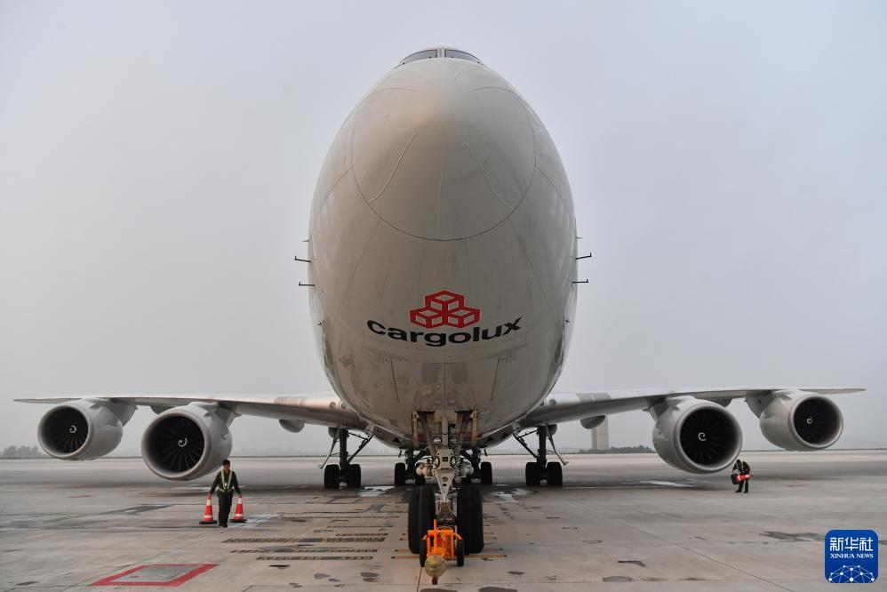 8月1日,在中国郑州新郑国际机场,一架卢森堡货航货机装货完毕准备起飞。新华社记者 李嘉南 摄