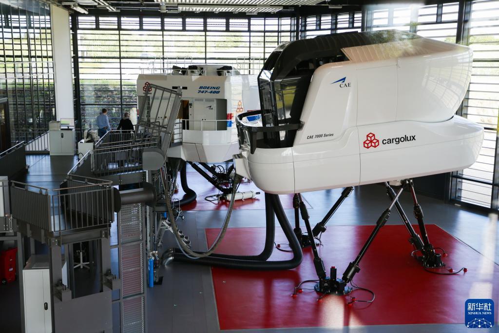 8月1日,工作人员在卢森堡货航总部的飞行模拟器区域工作。新华社记者 郑焕松 摄