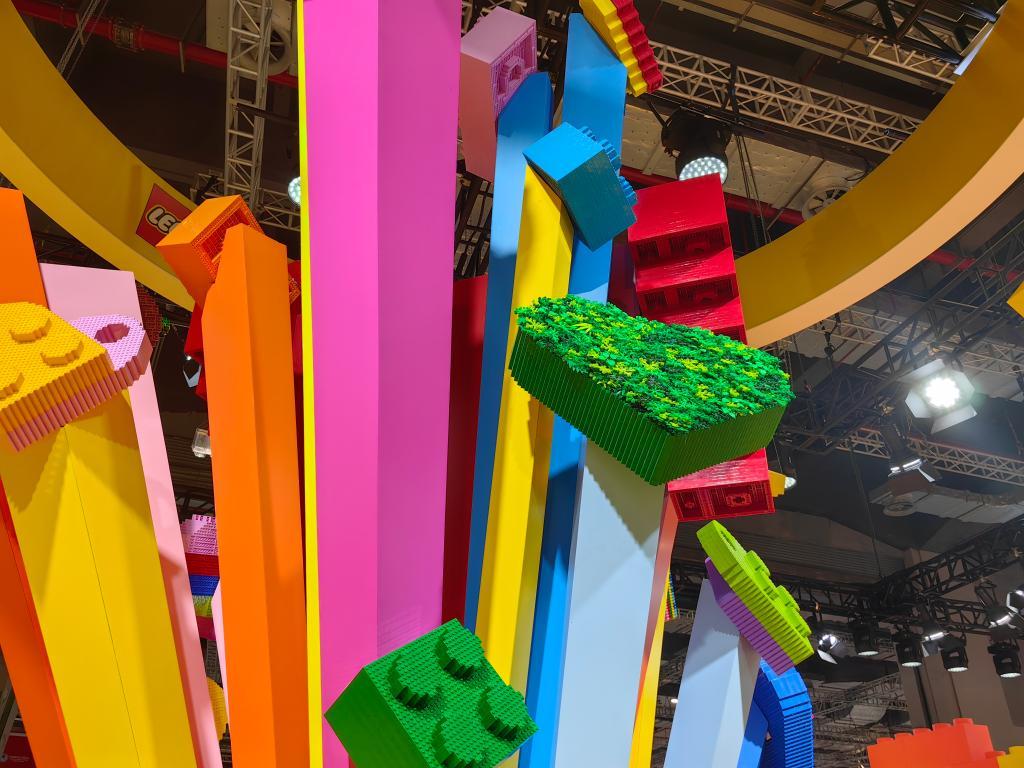 第六届进博会乐高展台上,10万块乐高积木颗粒搭建而成的大型3D乐高积木模型“玩乐之心”。新华社记者周蕊 摄