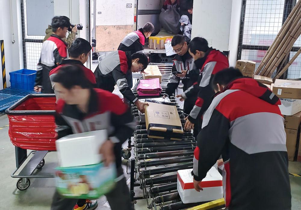 早晨6点,中通快递上海徐汇南站网点的快递小哥们就已经纷纷到岗,网点门口快递堆积如山。