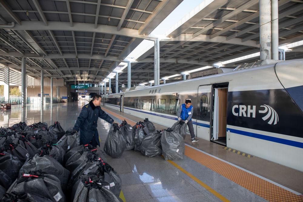 除了快递公司仓配能力不断提升外,运输线路不断优化也是让快递提速的关键。11月1日,为期20天的“双十一”网购高峰期铁路快运服务正式启动。
