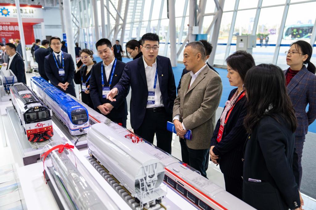 12月8日,在株洲国际会展中心,工作人员给观众介绍列车模型。 新华社记者 陈思汗 摄