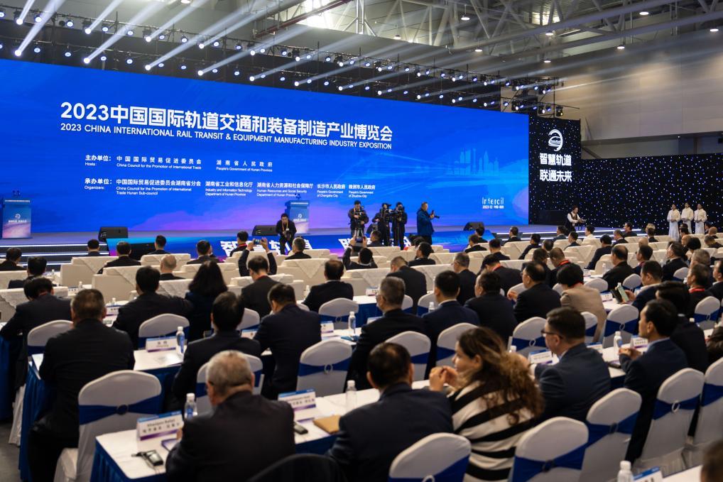12月8日,2023中国国际轨道交通和装备制造产业博览会开幕式在株洲国际会展中心举行。 新华社记者 陈思汗 摄
