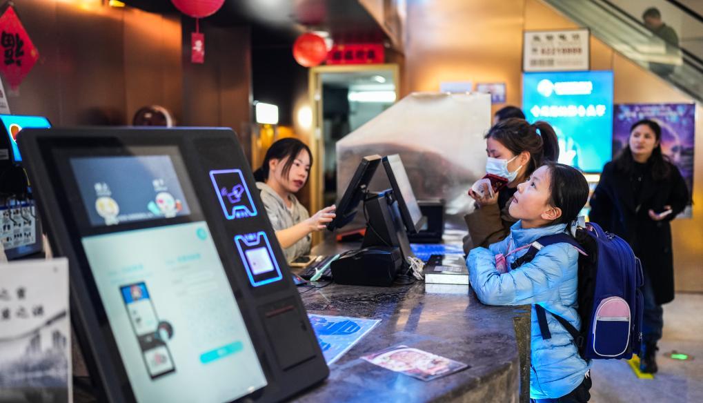 2月18日,人们在贵阳市云岩区益田国际影城选购电影票。新华社记者 陶亮 摄