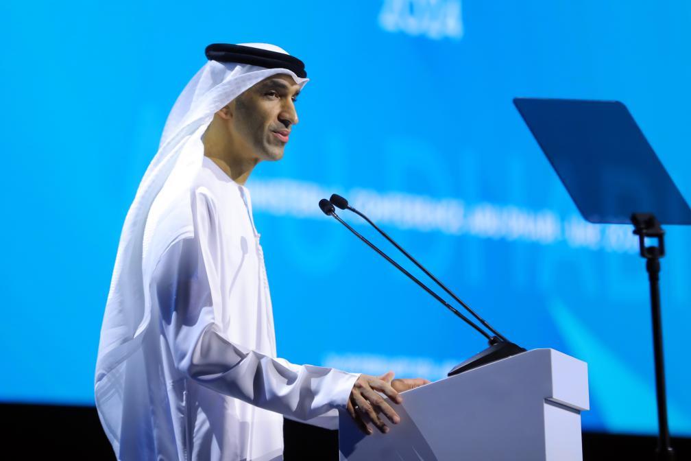 2月26日,在阿联酋首都阿布扎比,阿联酋外贸国务部长、世贸组织第13届部长级会议主席萨尼·泽尤迪在世界贸易组织第13届部长级会议开幕式上致辞。新华社发(世界贸易组织供图)