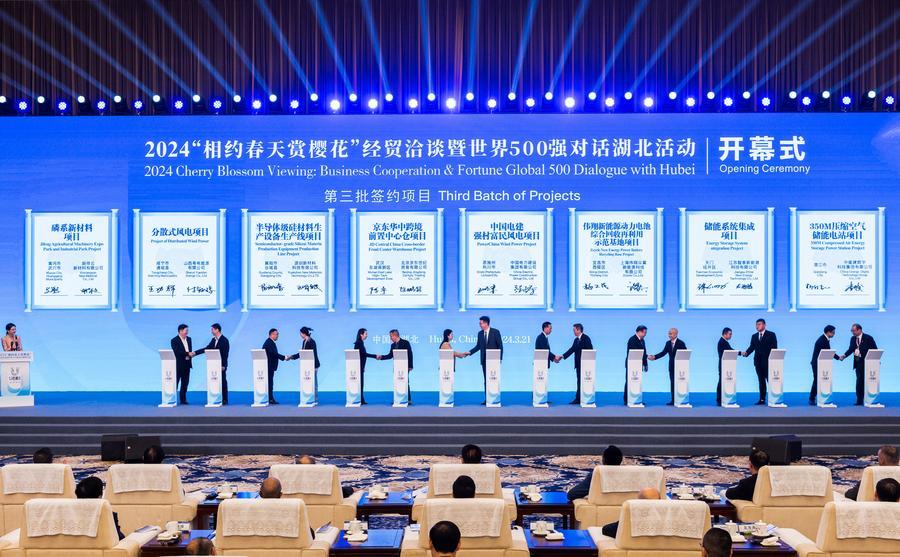 3月21日,2024“相约春天赏樱花”经贸洽谈暨世界500强对话湖北活动在湖北武汉开幕。新华社记者 肖艺九 摄