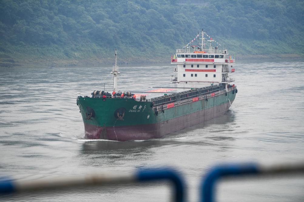 “创新5”轮船长吴加福说,万吨级“创新5”轮既符合近海行驶标准,也符合三峡大坝过闸通航要求,并且是一艘LNG双燃料动力船舶,节省了燃料成本,更加绿色低碳。