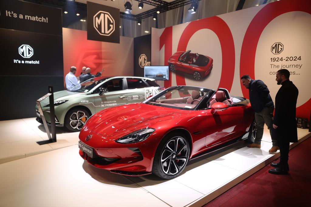 2024年1月17日,人们在比利时布鲁塞尔举办的2024布鲁塞尔汽车展上参观上汽名爵电动汽车。新华社记者赵丁喆摄