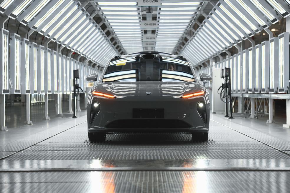 这是在安徽省合肥市新桥智能电动汽车产业园蔚来第二工厂拍摄的新能源汽车生产线(2024年5月9日摄)。新华社记者张端摄