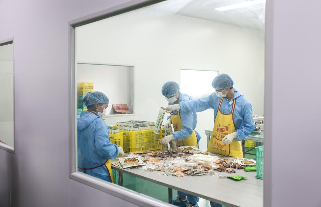 工作人员在甘肃天水市一家麻辣烫企业车间内包装产品。新华社记者 吕帅 摄