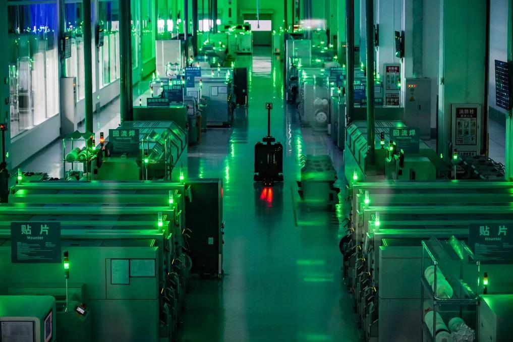无数绿灯依次闪烁,少量工人巡检其间……在这座达到业界标杆水平的零碳智造工厂,“黑灯”模式下运作的电脑主板生产线繁忙却有序。“我们基于‘端—边—云—网—智’新IT技术架构,使生产效率提升200%。猜猜看,现在下线一块主板、一台笔记本能有多快?”联想天津工厂厂长于小建给出的答案是,“9秒!”