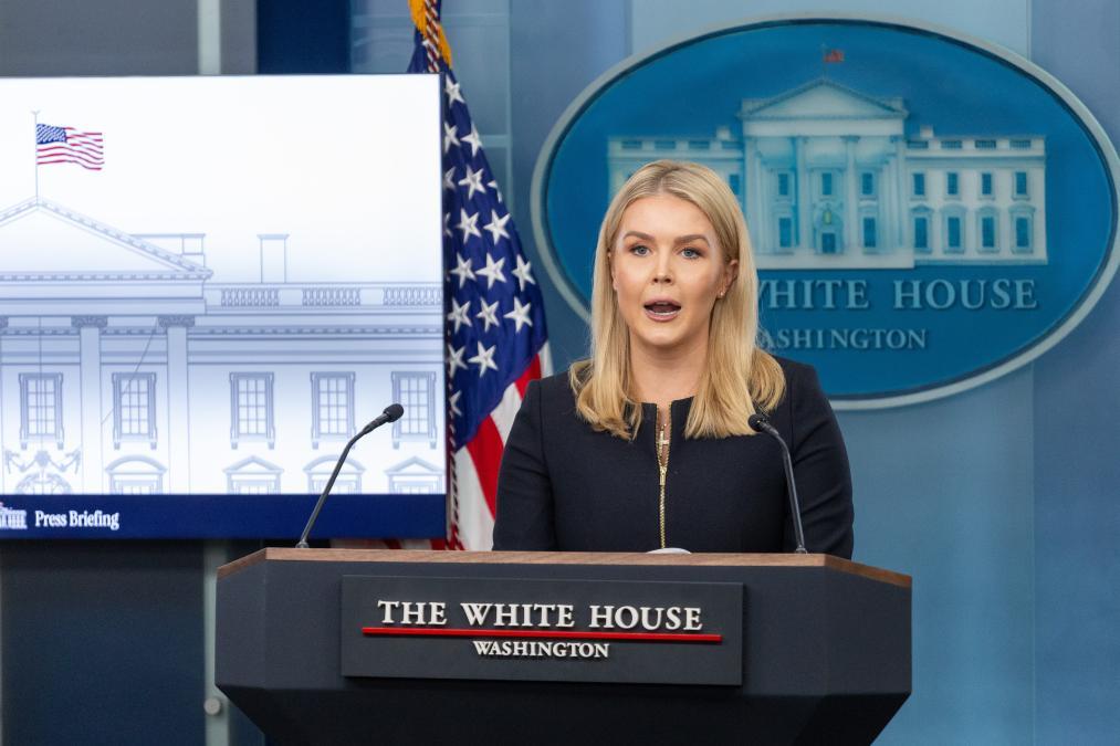 3月5日,美国白宫新闻发言人卡罗琳·莱维特在美国首都华盛顿参加新闻发布会。新华社记者胡友松摄