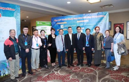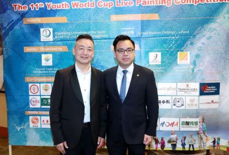 世界杯青少年现场绘画大赛主席郑永和与加拿大国会议员缪宗宴合影