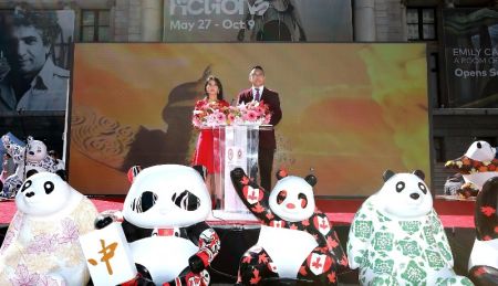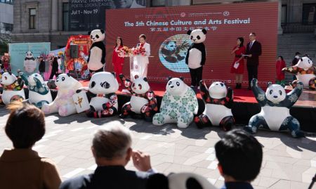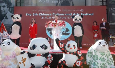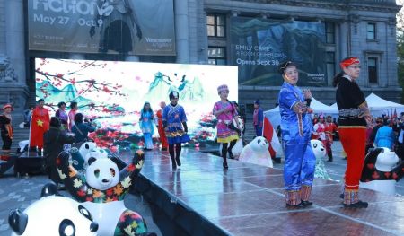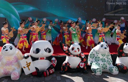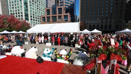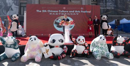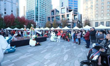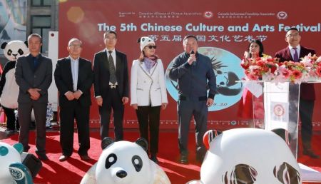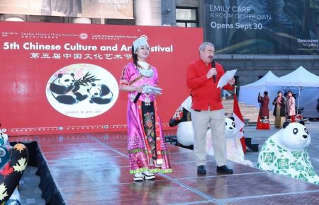 (本报讯)中秋时节,月圆花香。加拿大华人社团联席会和加拿大四川同乡总会主办的第五届中国文化艺术节9月29日至30日在温哥华美术馆北广场隆重举行,灿烂的阳光下,白色帐篷,蔚为壮观,彩旗飞舞,乐声悠扬,十二个专门从四川订制代表中加两国元素的彩绘熊猫亮相温哥华美术馆广场,现场免费发放熊猫原创礼品—衣服、帽子 、钥匙扣和公仔等给各族裔民众。龙腾狮舞,鼓乐齐鸣,少林功夫,服装走秀,中华传统文化在温哥华市中心烘托出一派文化盛景。